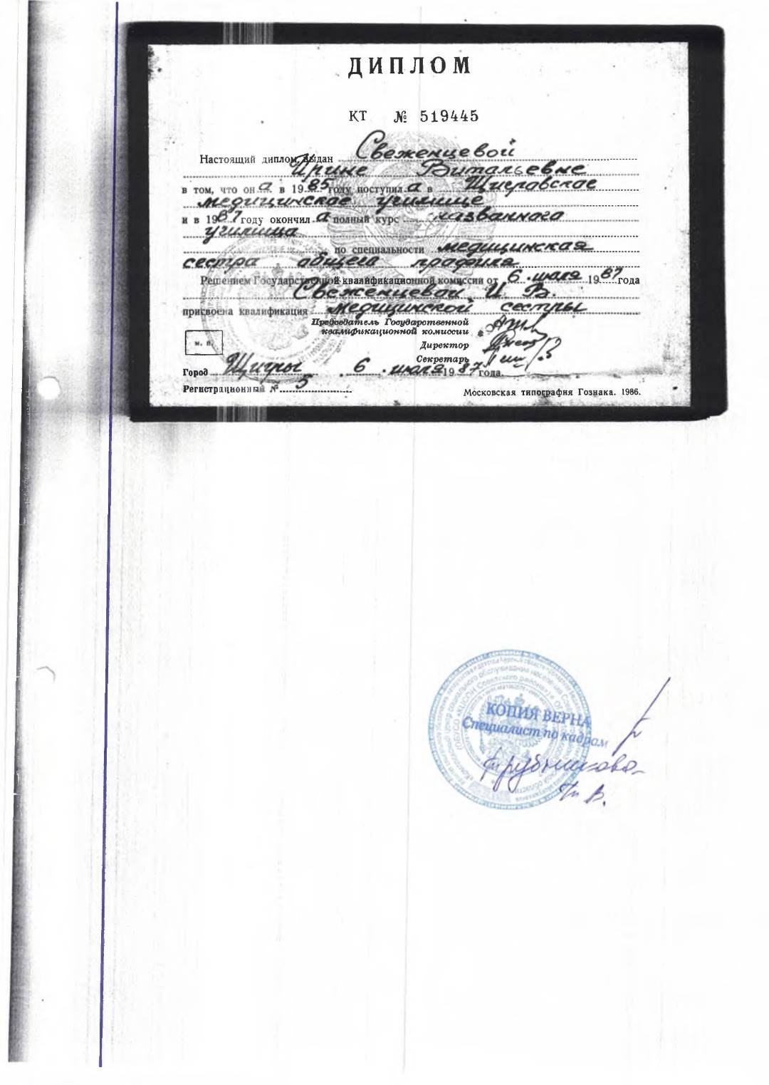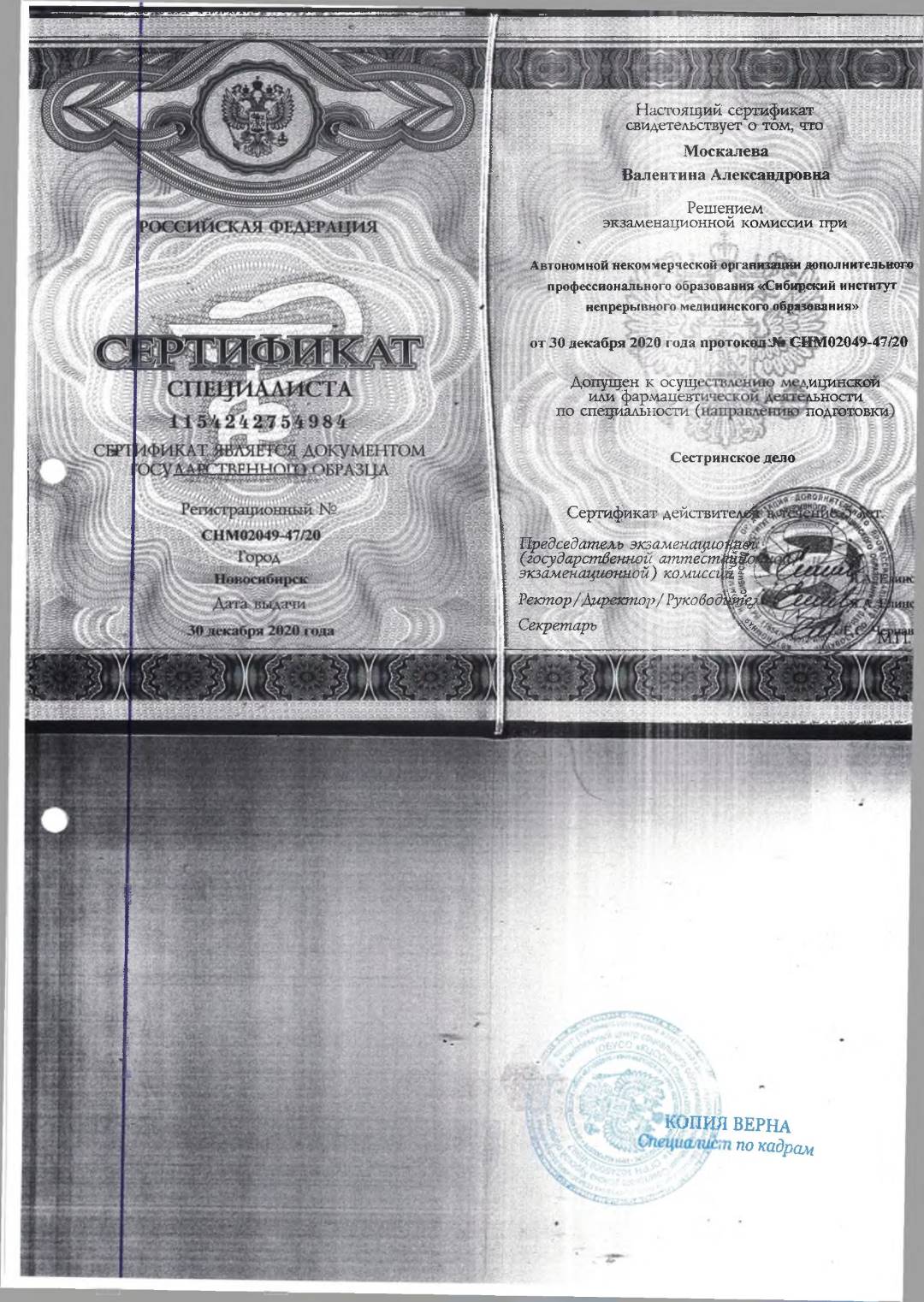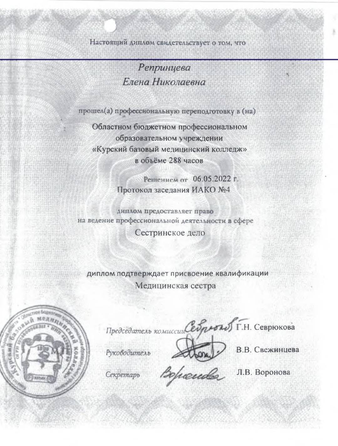 Документы об образовании среднего медицинского персонала.