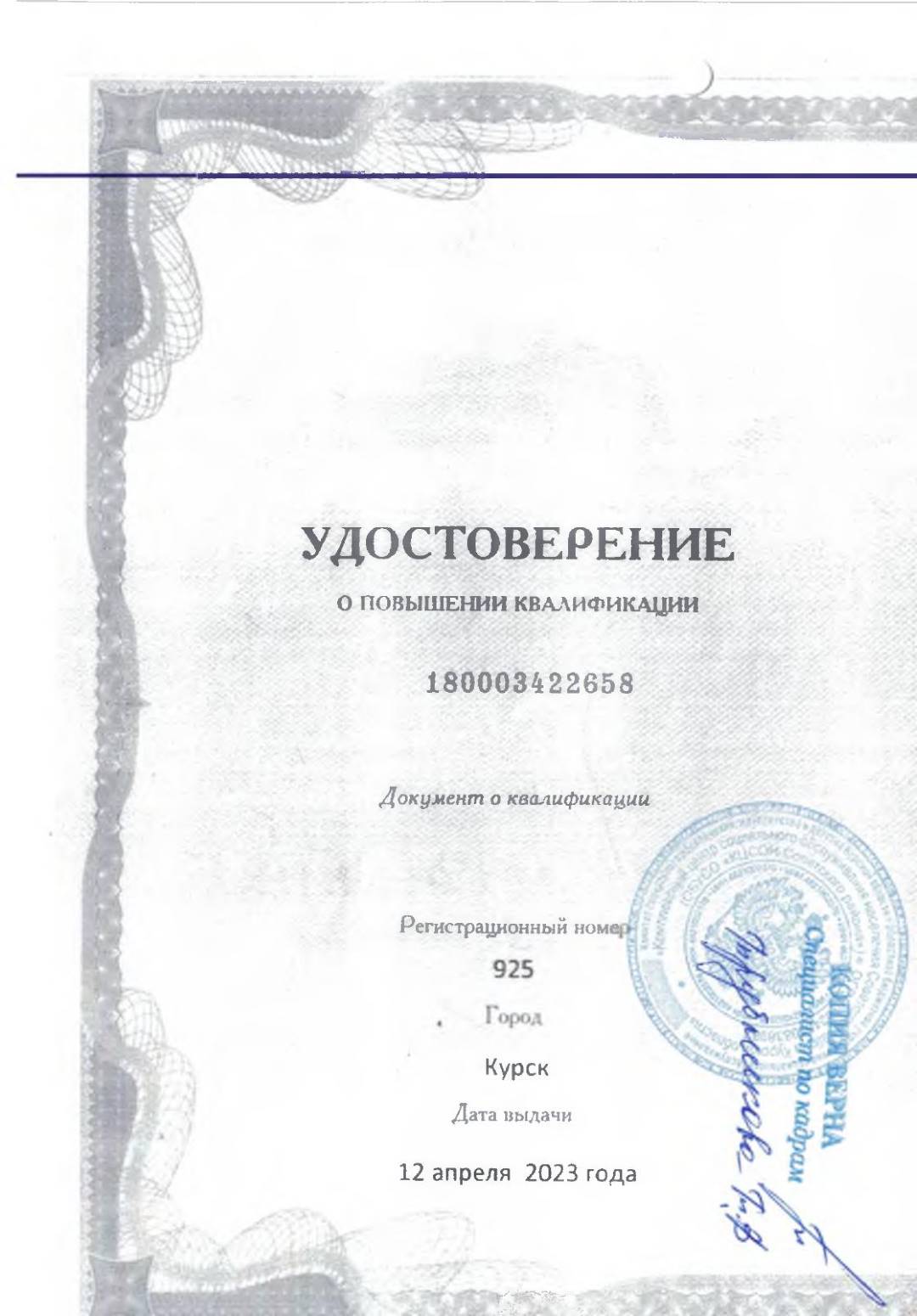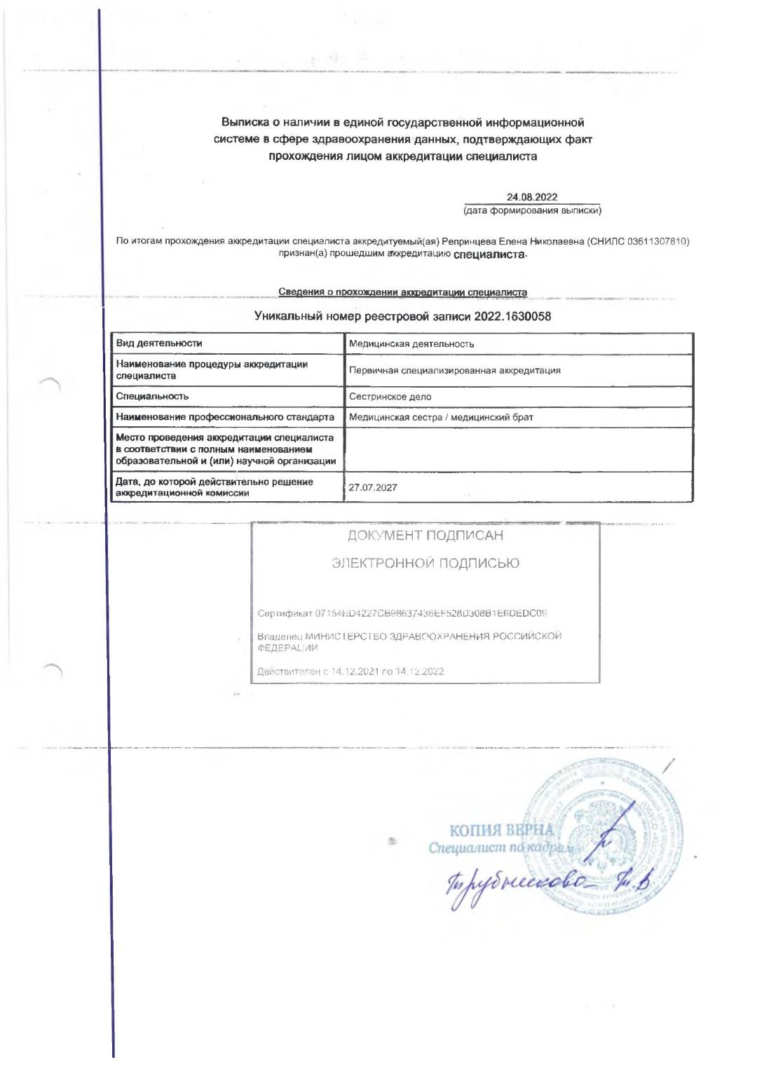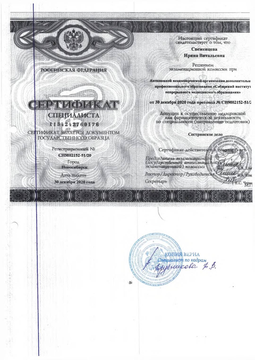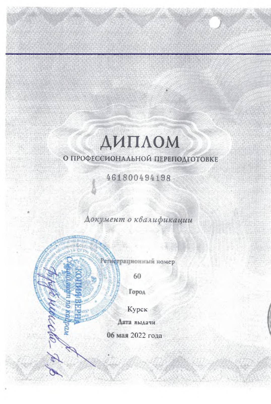 Документы об образовании среднего медицинского персонала.