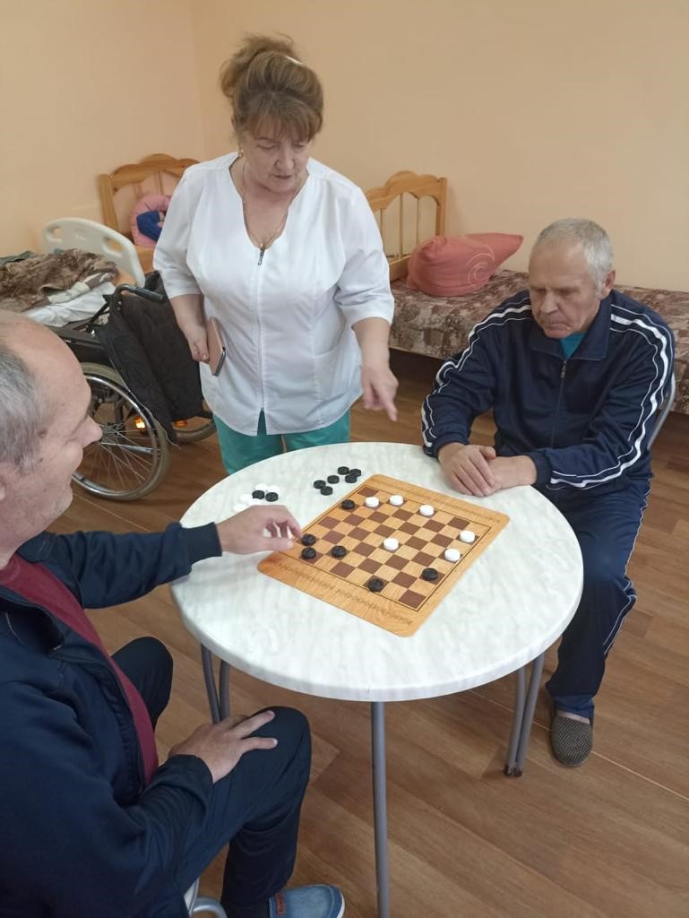 Настольные игры для пожилого человека – один из способов проводить интересный и полезный досуг. Игровая терапия дарит радость, положительные эмоции, которые крайне важны. 3 октября в отделении временного проживания психоневрологического типа ОБУСО «КЦСОН Советского района» прошло соревнование по играм в шашки и шахматы.
