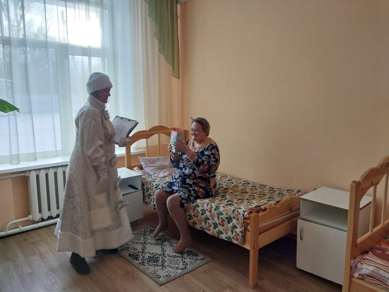 Принято считать, что Новый год – семейный праздник, но, к сожалению, не каждый может встретить его дома в окружении родных и близких. Нет такой возможности и у людей, оставшихся в пожилом возрасте одинокими. Им не хватает внимания и заботы. Сотрудники отделения временного проживания, расположенном в п. Расховецкий, в роли Деда Мороза со Снегурочкой, с искренними пожеланиями благополучия, здоровья, счастья и долголетия вручили новогодние подарки пенсионерам. Надо было видеть глаза этих людей, сколько радости и благодушия было в них…