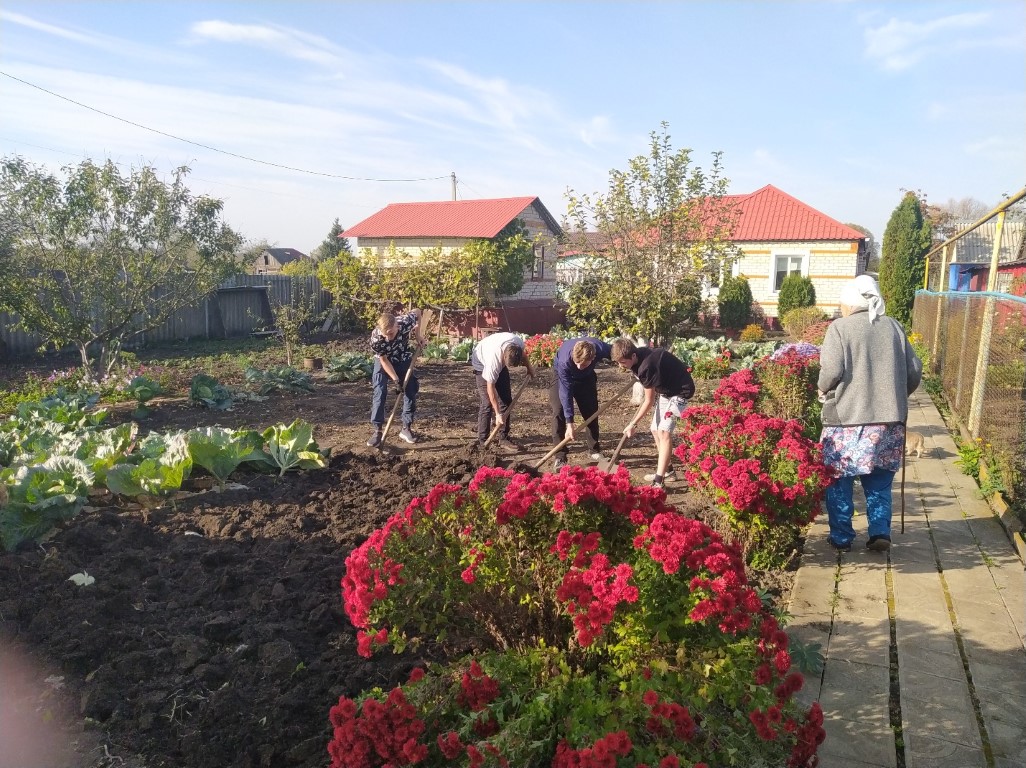 Декада пожилого человека продолжается… Тимуровцы «Движение первых» совместно с ОБПОУ «Социально-аграрный техникум имени В.М.Клыкова» продолжают оказывать помощь пожилым людям, состоящим на социальном обслуживании на дому. Пенсионерке Мишиной А. А. вскопали огород.
