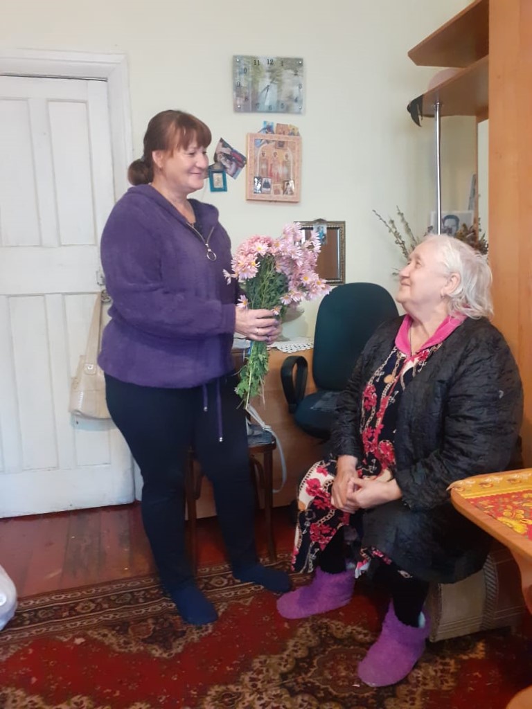 Социальные работники поздравили учителей, состоящих на социальном обслуживании на дому. Педагогам вручили подарки, в их адрес прозвучали искренние пожелания крепкого здоровья, благополучия и счастливого долголетия.